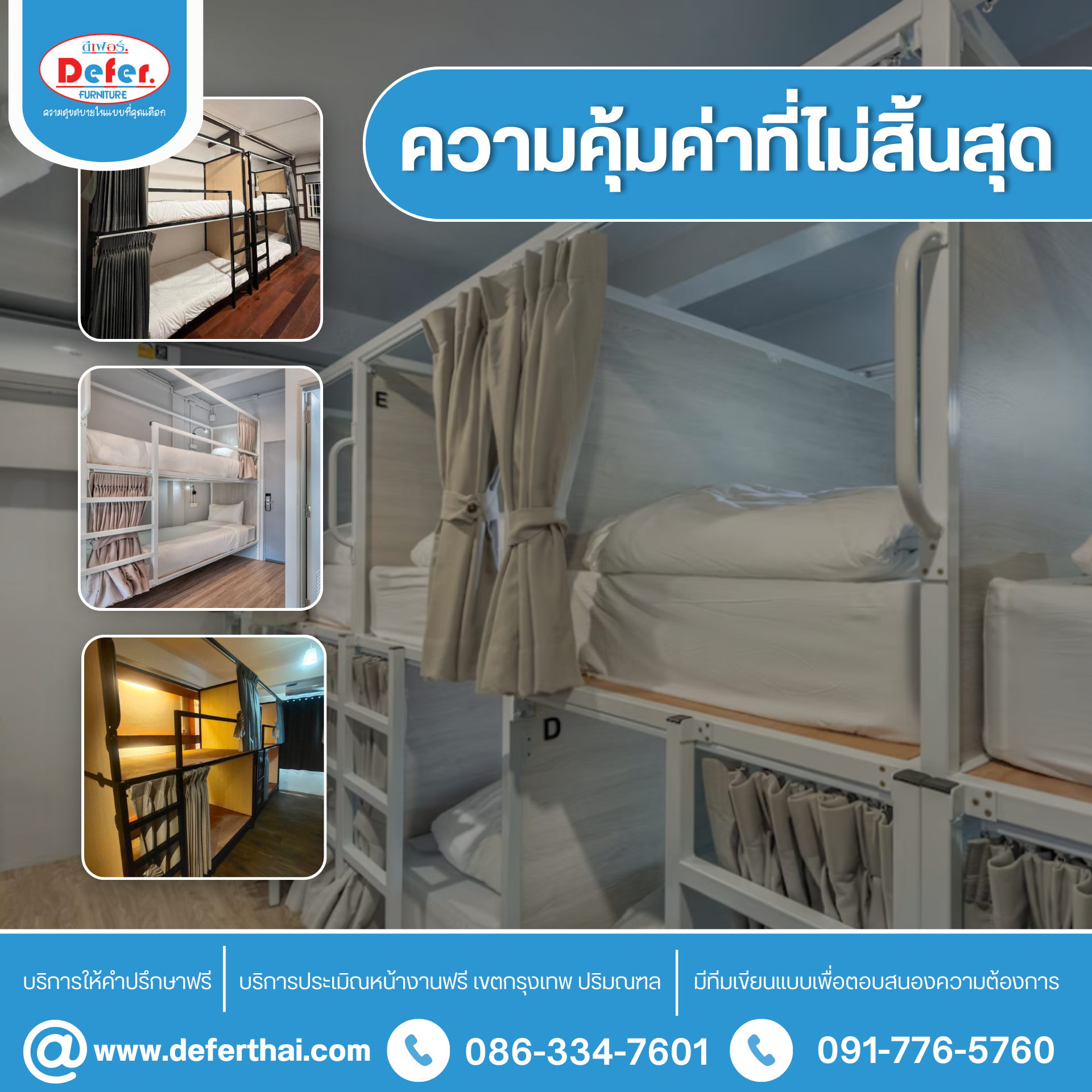 ปรึกษาเรื่องเตียงสำหรับโฮสเทลและดูสินค้าที่ได้มาตรฐานทั้งหมดได้ทันทีที่ www.deferthai.com เราพร้อมส่งมอบความคุ้มค่าที่คุณไว้วางใจได้